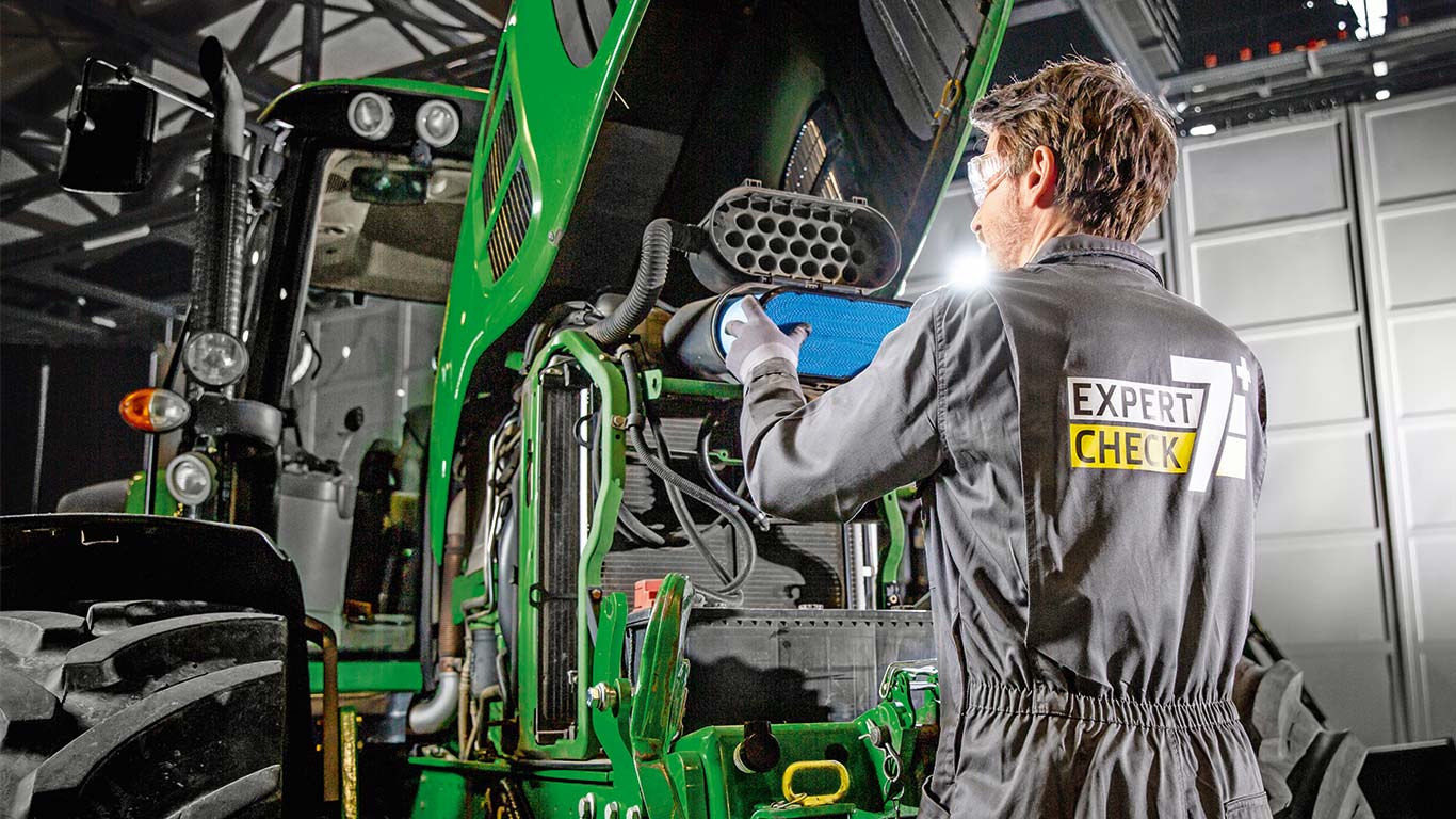 Είτε πρόκειται για ένα τρακτέρ, μία θεριζοαλωνιστική ή έναν ψεκαστήρα: αν η μηχανή JohnDeere σας είναι περισσότερο από 7 ετών, το ExpertCheck 7+ είναι η σωστή επιλογή. Αποφασίστε γρήγορα και εύκολα ποια συντήρηση θέλετε να έχετε πραγματοποιήσει με βάση τα αποτελέσματα που σας παραδόθηκαν από τους ειδικούς μας. Με αυτόν τον τρόπο, το μηχάνημά σας θα συνεχίσει να λειτουργεί άριστα καθόλη τη διάρκεια ζωής του.