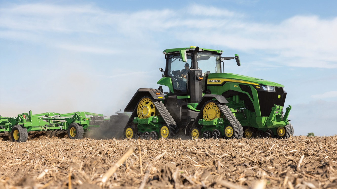 Τα μοναδικά τρακτέρ τεσσάρων ερπυστριών υψηλής ιπποδύναμης 8RX παρέχουν εξαιρετική προστασία του εδάφους και έλξη: Με πλάτος ιμάντα ερπύστριας έως 30", φαρδύτερους άεργους τροχούς στον βασικό εξοπλισμό για τις πίσω ερπύστριες 30" και νέο σχεδιασμό ράβδου πέλματος σε σχήμα κυπέλλου, το 8RX αποτελεί σημείο αναφοράς για τη διαφύλαξη του εδάφους. Χάρη στην προηγμένη σχεδίαση του πλαισίου στήριξης, με τις προεξοχές του μηχανισμού κίνησης και τις ράβδους πέλματος χυτευμένες στον ιμάντα ερπύστριας και τα νέα μεσαία ράουλα με εξαιρετικά υψηλό μοριακό βάρος (UHMW) που είναι κατασκευασμένα από ανθεκτικό συνθετικό υλικό σιδήρου-πολυεστέρα-καουτσούκ με μόνιμο δεσμό, οι ερπύστριες αυτές παρέχουν ασύγκριτη απόδοση και αξιοπιστία στις πιο δύσκολες συνθήκες.